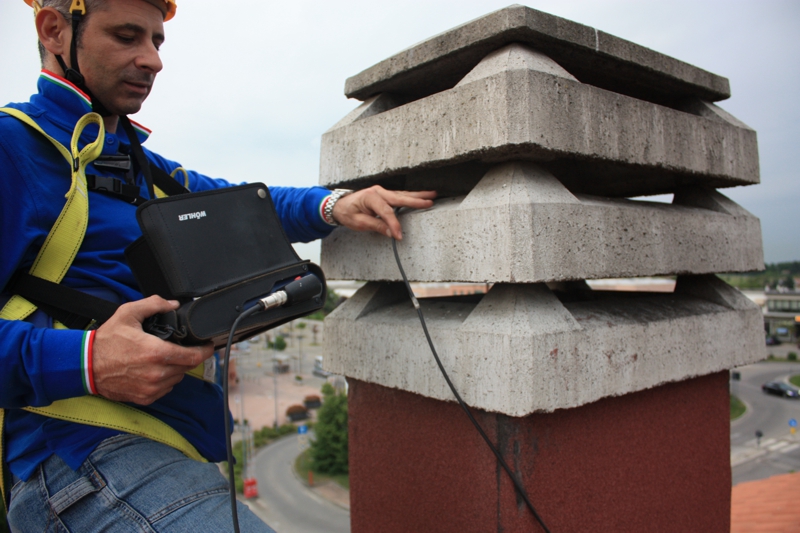 La video ispezione delle canne fumarie si esegue normalmente inserendo dal comignolo (o comunque dal termine della parte alta del condotto) una telecamera specifica con