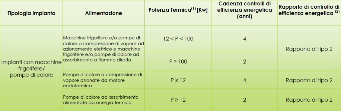 (1) I limiti degli intervalli sono riferiti alla potenza utile nominale complessiva dei generatori e delle macchine frigorifere che servono lo stesso impianto.