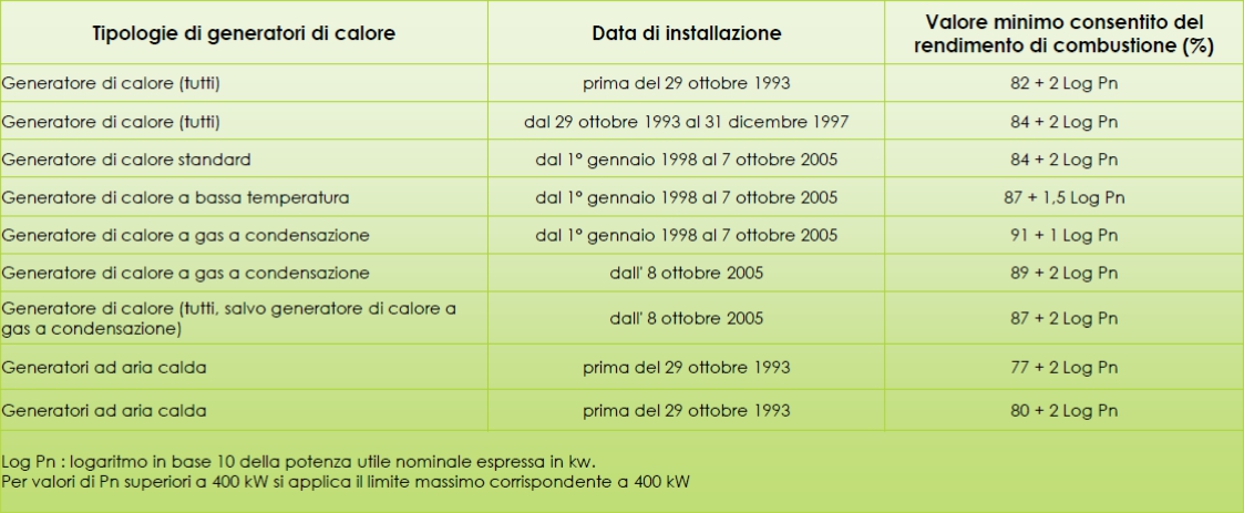 Valori minimi consentiti del rendimento di combustione