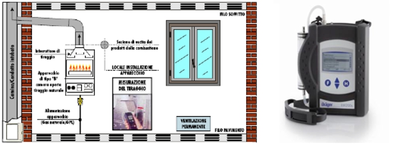 di tiraggio del sistema fumario con apparecchiature omologate, in modo da poter valutare nella sua totalità la situazione riscontrata.